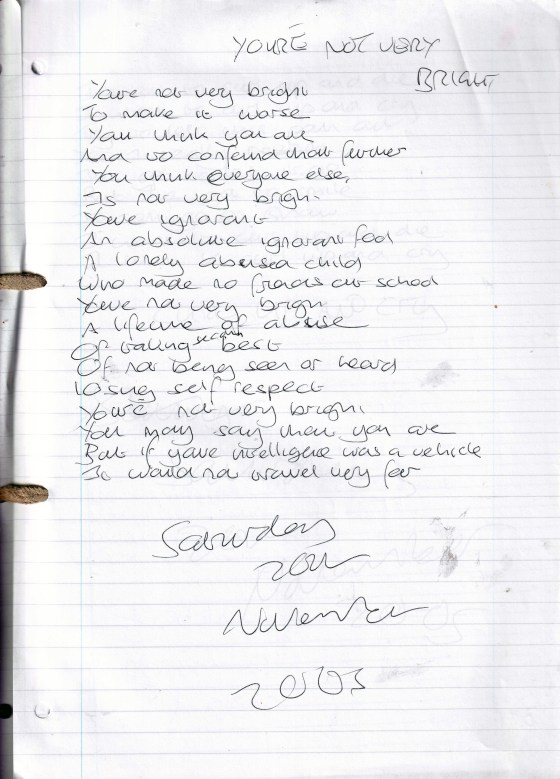 You Are Not Very Bright – Written Saturday 26th November 2005 (Aged 30)