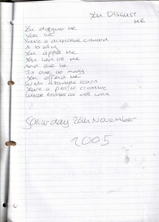 You Disgust Me – Written Saturday 26th November 2005 (Aged 30)