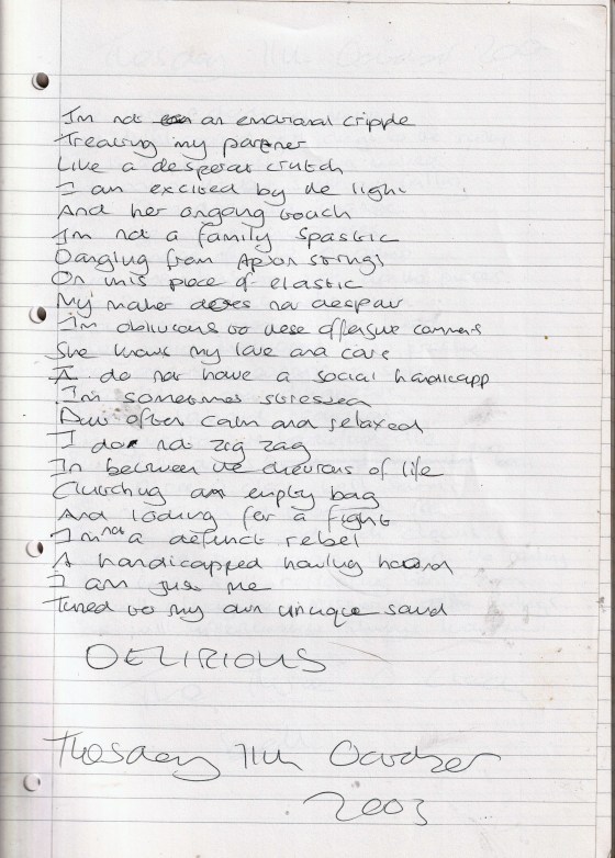Delirious – Written Tuesday 11th October 2005 (Aged 30)