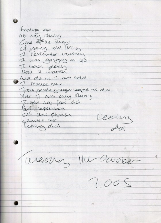 Feeling Old – Written Tuesday 11th October 2005 (Aged 30)