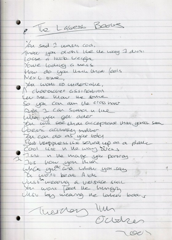 The Latest Boots- Written Tuesday 11th October 2005 (Aged 30)
