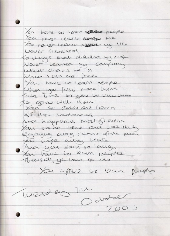 You Have To Learn People – Written Tuesday 11th October 2005 (Aged 30)
