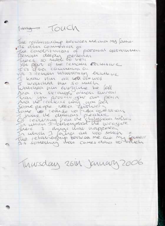 Touch – Written Thursday 26th January 2006 (Aged 30)
