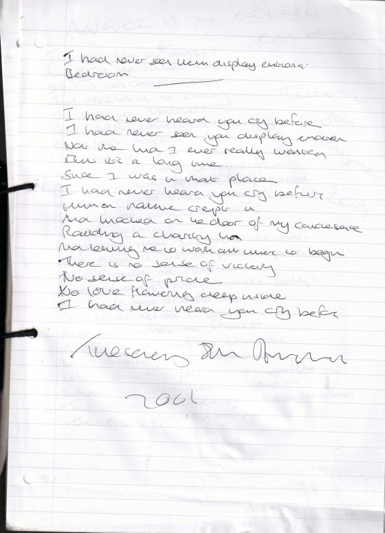 I Had Never Heard You Cry Before (Originally Untitled) – Written Tuesday 8th August 2006 (Aged 31)