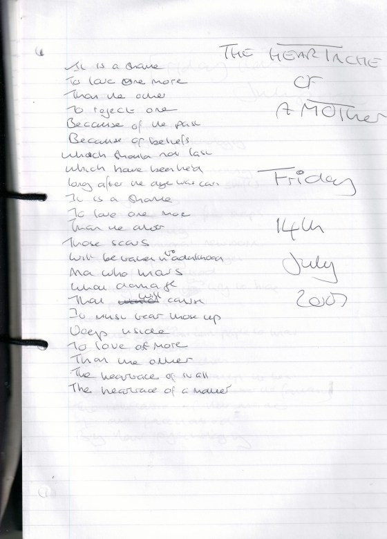 The Heartache of a Mother – Written Friday 14th July 2006 (Aged 31)