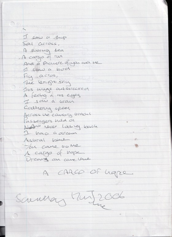 A Cargo of Hope – Written Saturday 17th June 2006 (Aged 31)
