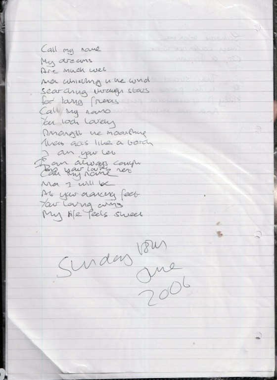 Call My Name – Written Sunday 18th June 2006 (Aged 31)