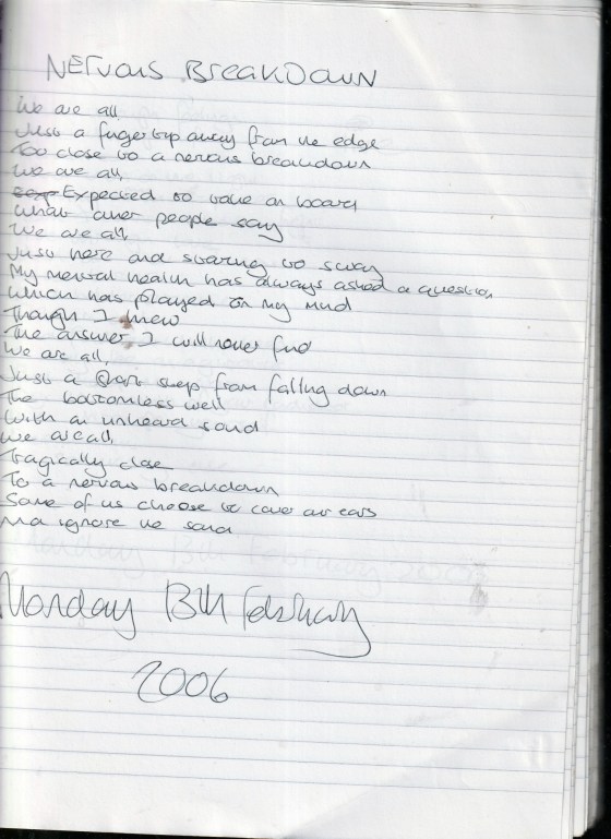 Nervous Breakdown – Written Monday 13th February 2006 (Aged 30)