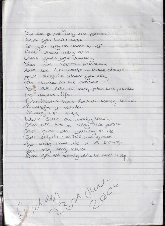 My Heart Goes Out To You – Written Sunday 18th June 2006 (Aged 31)