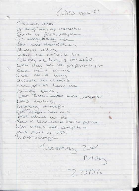 Glass Houses – Written Tuesday 2nd May 2006 (Aged 31)