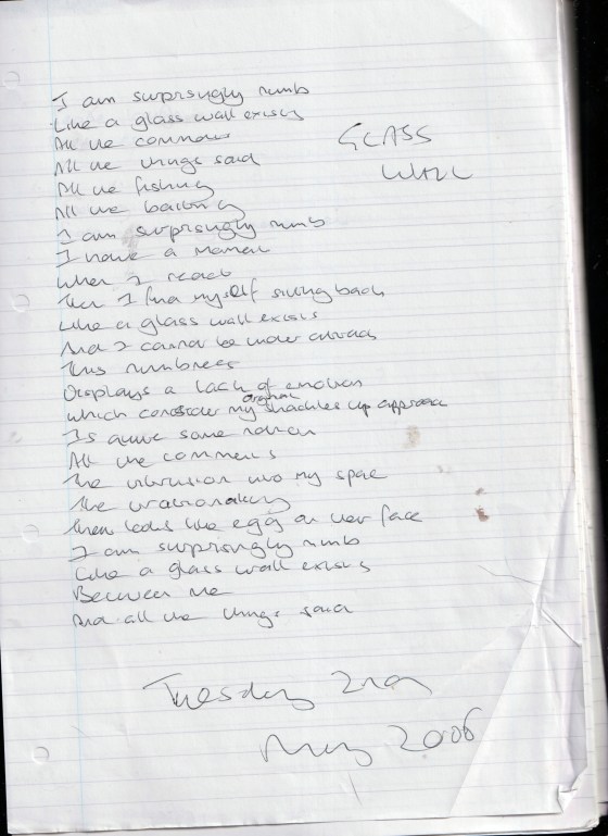 Glass Wall – Written Tuesday 2nd May 2006 (Aged 31)
