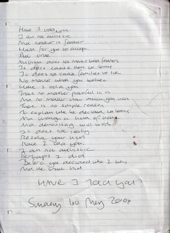 Have I Told You? – Written Sunday 1st May 2006 (Aged 31)