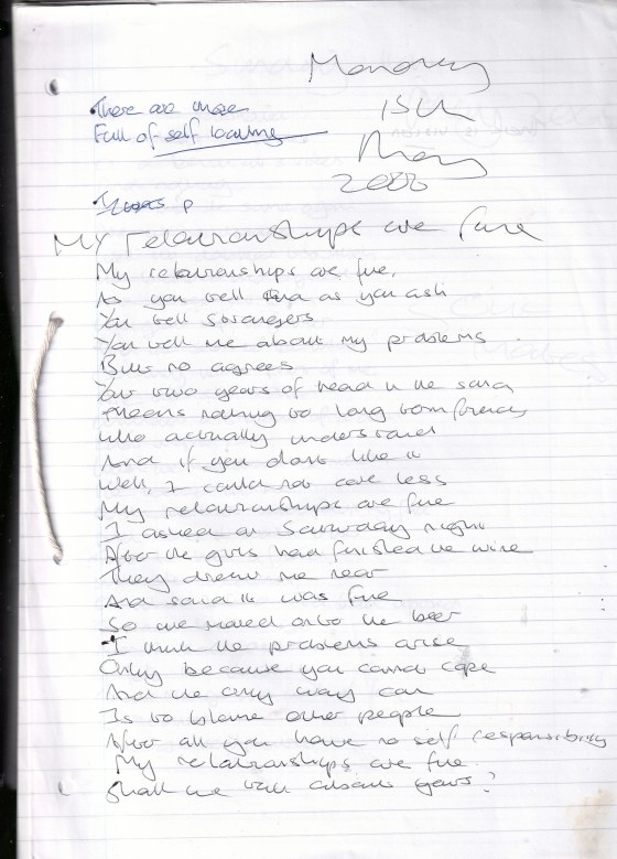 My Relationships Are Fine – Written Monday 15th May 2006 (Aged 31)
