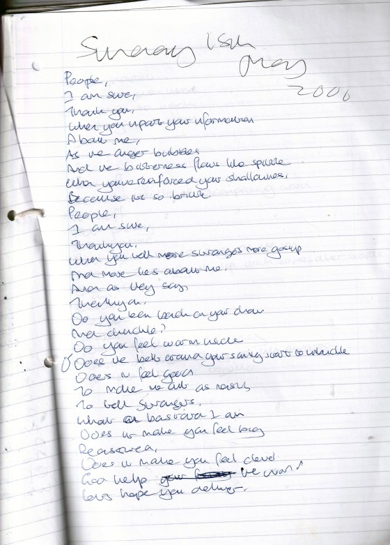 Talking to Strangers (Originally Untitled) – Written Monday 15th May 2006 (Aged 31)