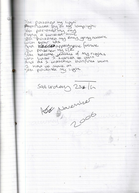 You Poisoned My Light – Written Saturday 25th November 2006 (Aged 31)
