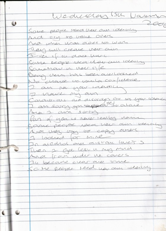 I Am Not Your Identity – Written Wednesday 15th November 2006 (Aged 31)