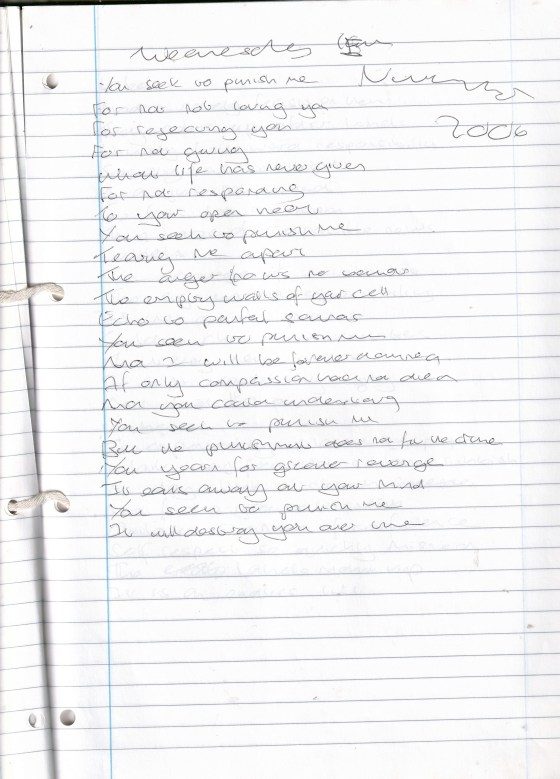 You Seek to Punish Me – Written Wednesday 15th November 2006 (Aged 31)