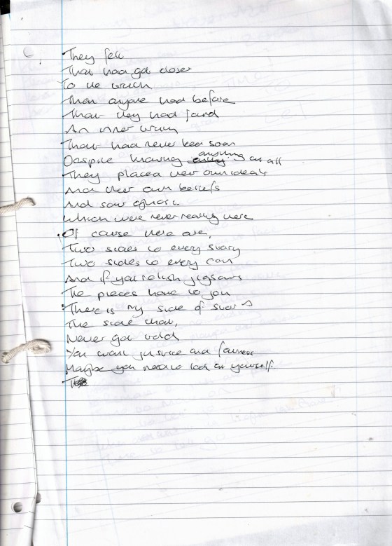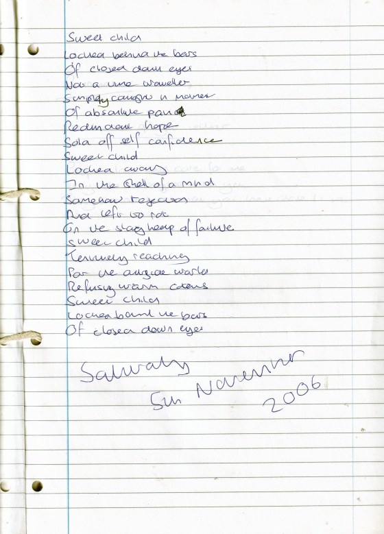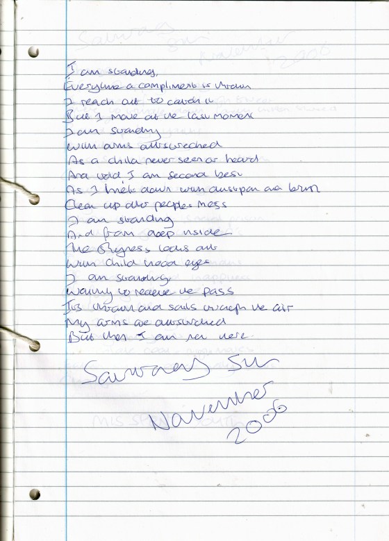 Message In My Writing Pad – Written Monday 6th November 2006 (Aged 31)