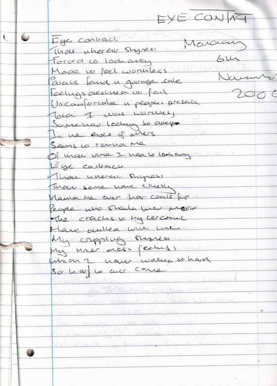 Eye Contact – Written Monday 6th November 2006 (Aged 31)