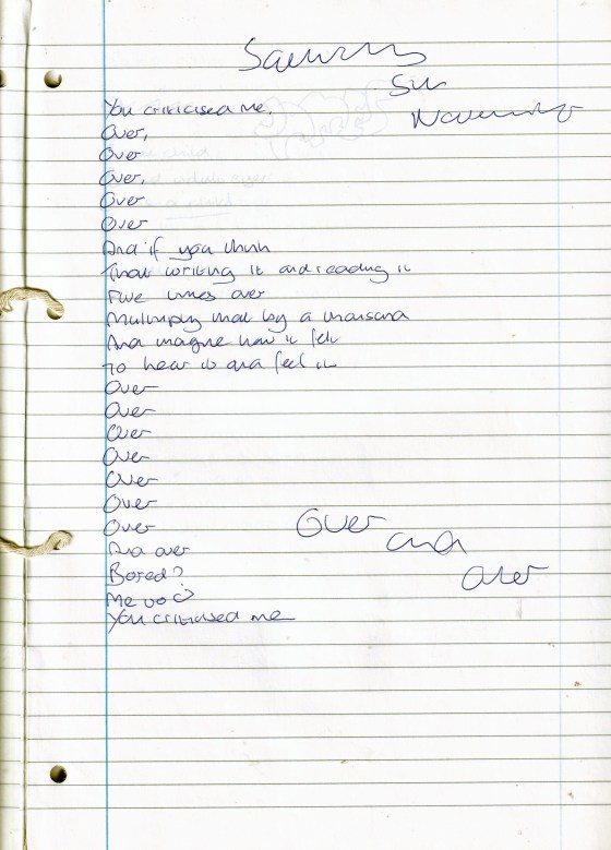 Over and Over – Written Saturday 4th November 2006 (Aged 31)