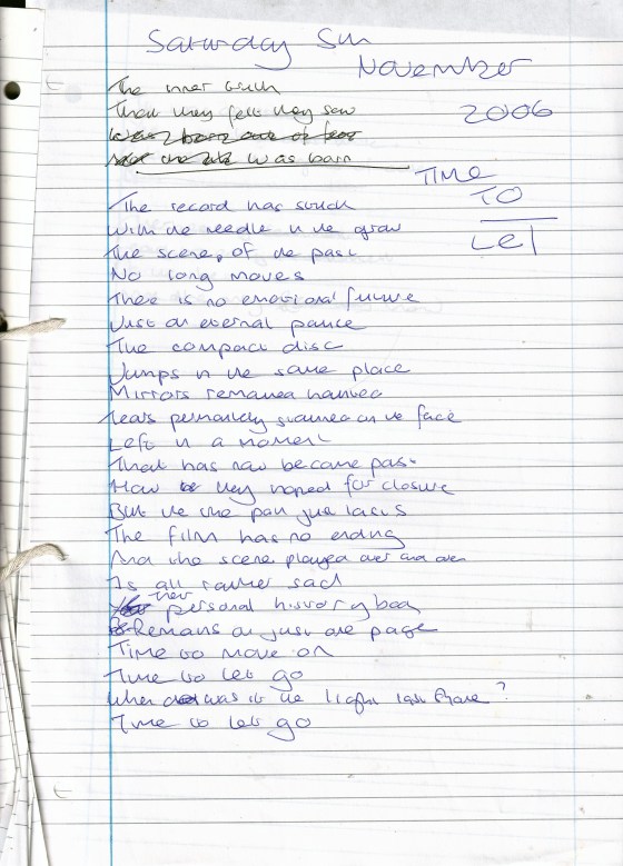 Time to Let Go – Written Saturday 4th November 2006 (Aged 31)