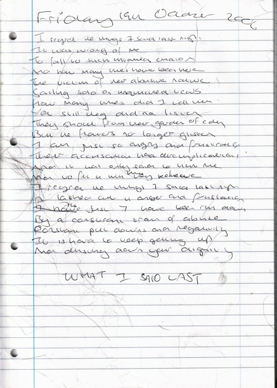 What I Said Last Night – Written Friday 20th October 2006 (Aged 31)