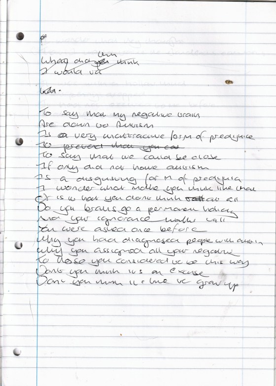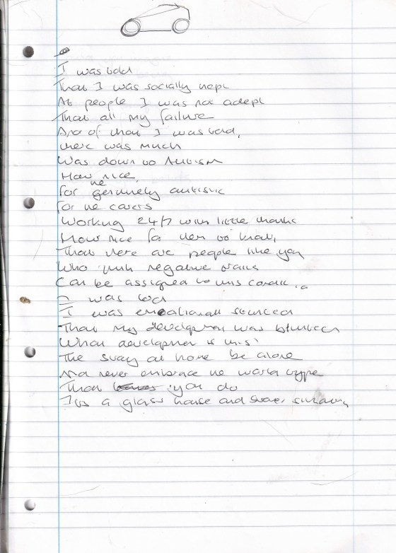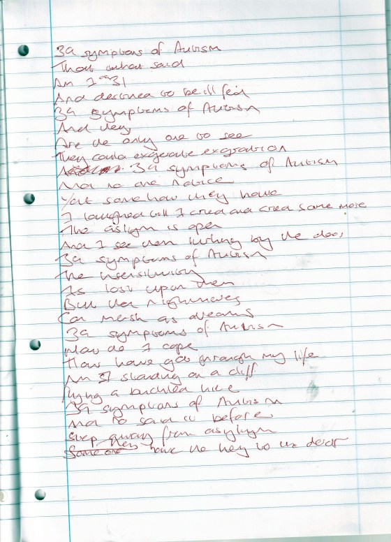 Thirty Nine Symptoms of Autism – Written October 2006 (Aged 31)