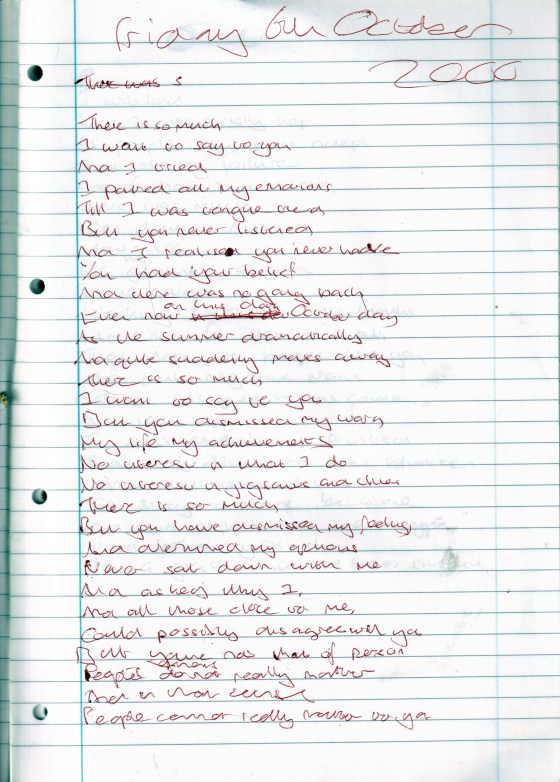 So Much I Want To Say To You – Written Friday 6th October 2006 (Aged 31)