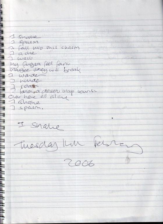 I Shake – Written Tuesday 14th February 2006 (Aged 30)