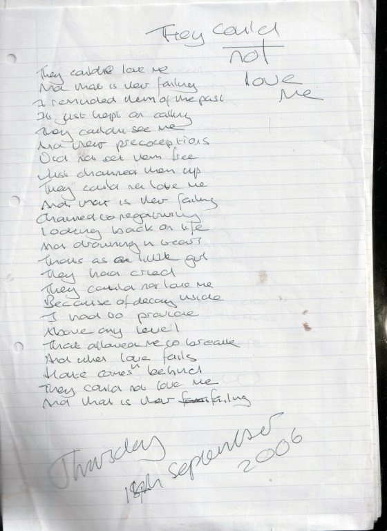 They Could Not Love Me – Written Thursday 14th September 2006 (Aged 31)