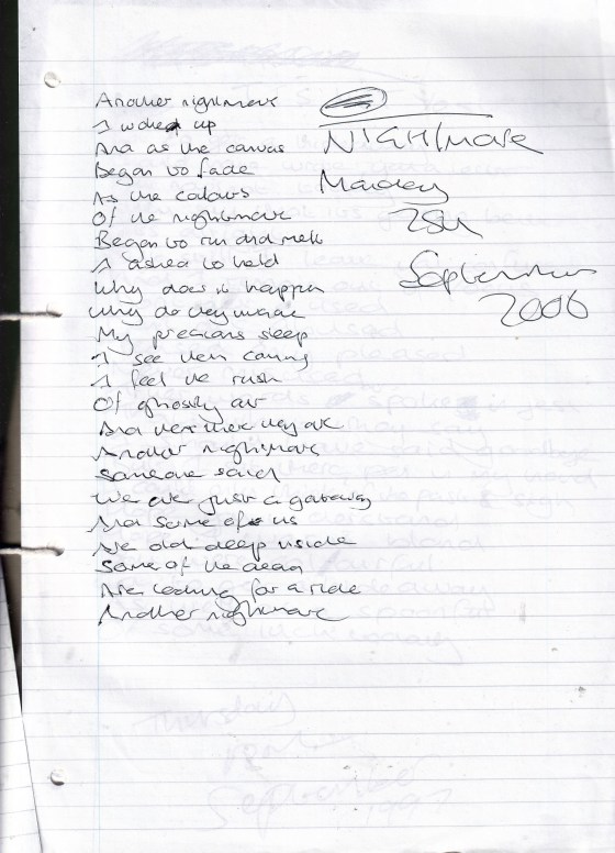 Nightmare – Written Monday 28th September 2006 (Aged 31)