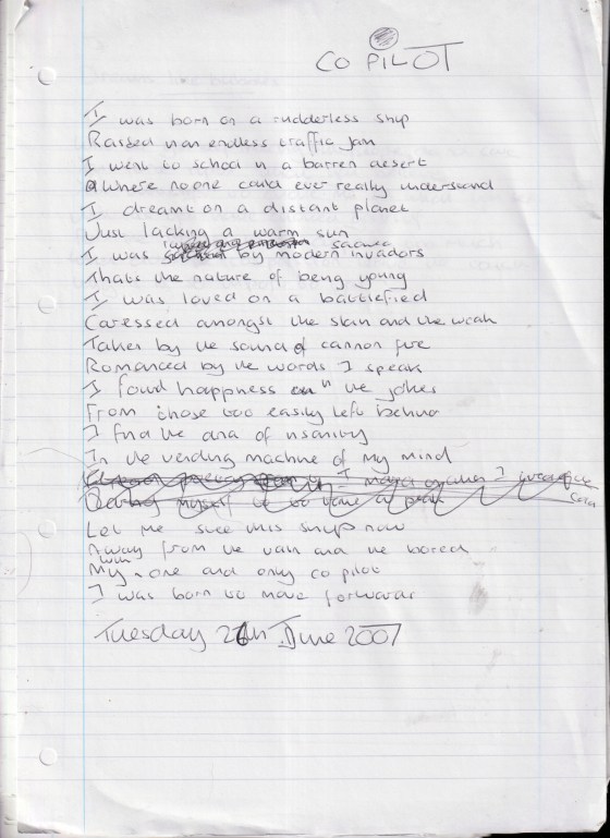 Co Pilot – Written Tuesday 26th June 2007 (Aged 32)
