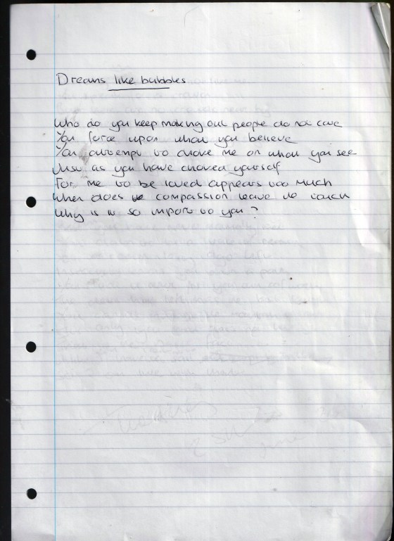 When Did Compassion Leave Your Touch – Written June 2007 (Aged 32)