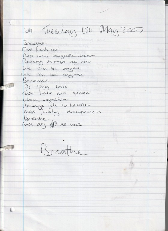Breathe – Written Tuesday 1st May 2007 (Aged 32)