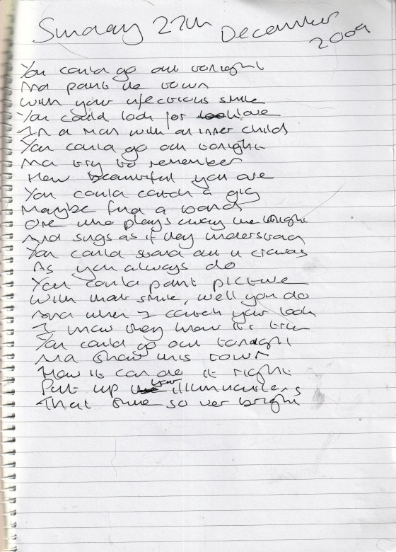 Out Tonight – Written Sunday 27th December 2009 (Aged 34)