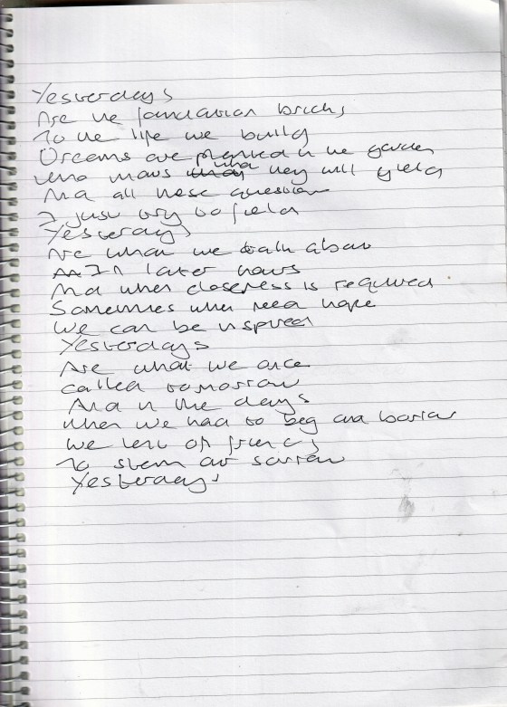 Yesterdays – Written December 2009 (Aged 34)