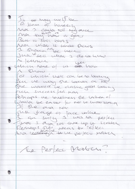 The Perfect Match? it may well bea form of honesty and i could roll my diceand say, thanks, see how … More
