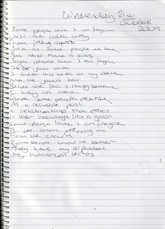 Alphabet Soup – Written Wednesday 21st October 2009 (Aged 34)