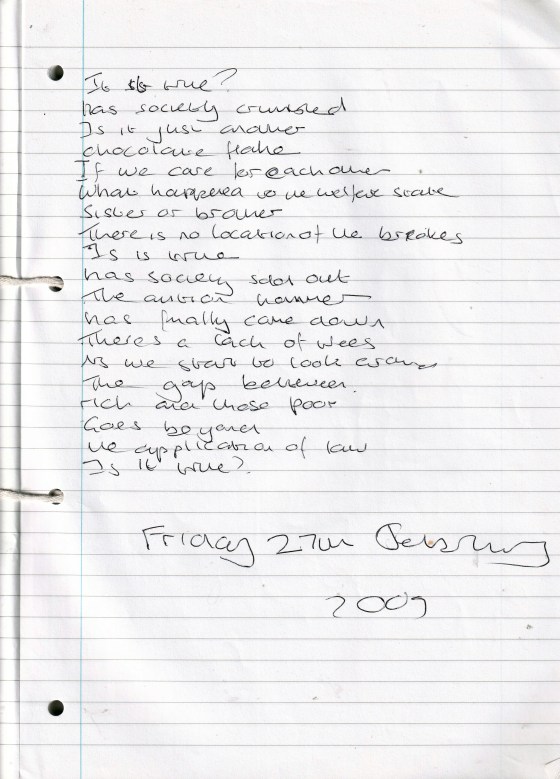 I Was Not Sure – Written Thursday 26th February 2009 (Aged 34)