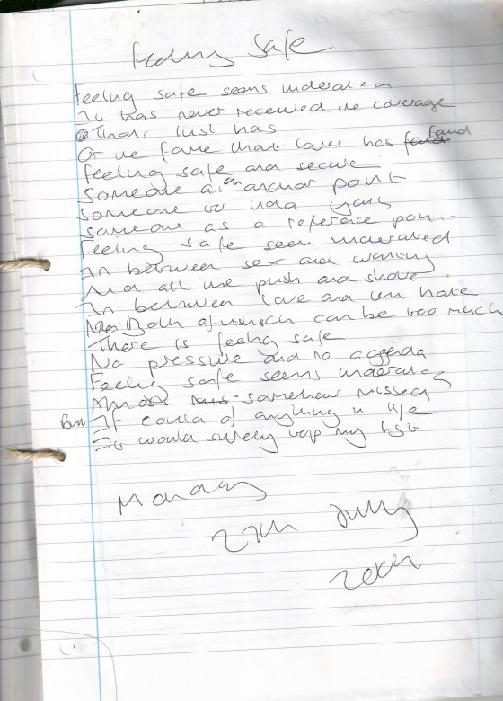 Feeling Safe – Written Monday 27th July 2009 (Aged 34)