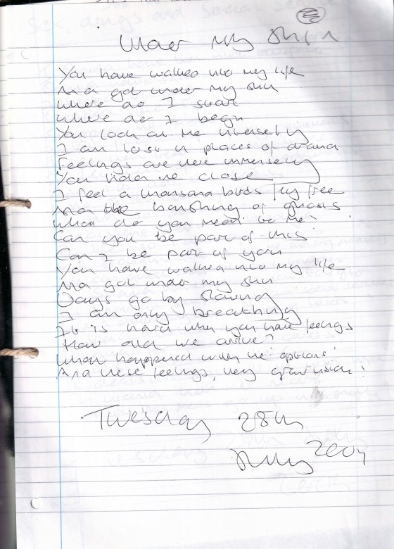 Under My Skin – Written Tuesday 28th July 2009 (Aged 34)