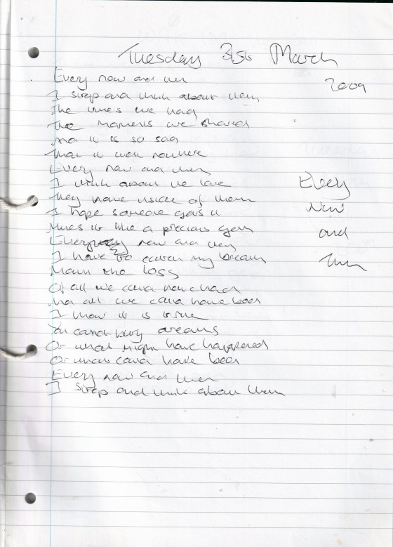 Every Now and Then – Written Tuesday 31st March 2009 (Aged 34)