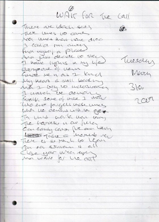 Stopped To Think About It – Written March 2009 (Aged 34)