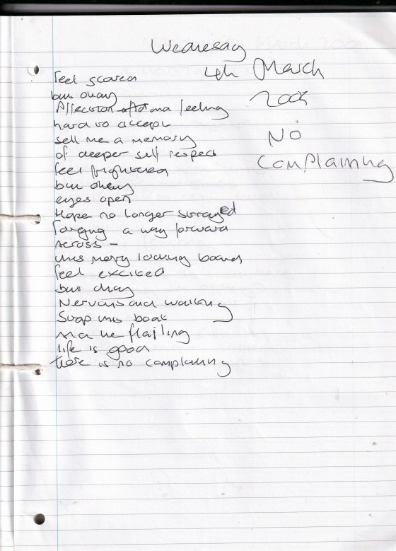 No Complaining – Written Wednesday 4th March 2009 (Aged 34)