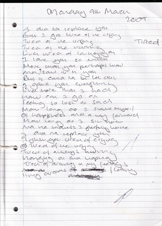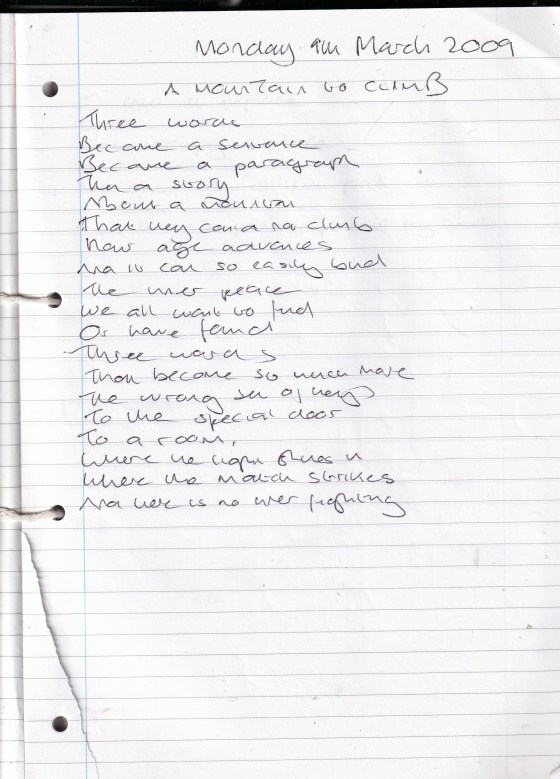 Three Words – Written Monday 9th March 2009 (Aged 34)