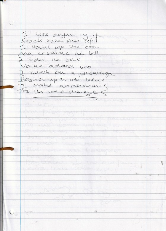 Stocktake – Written May 2009 (Aged 34)