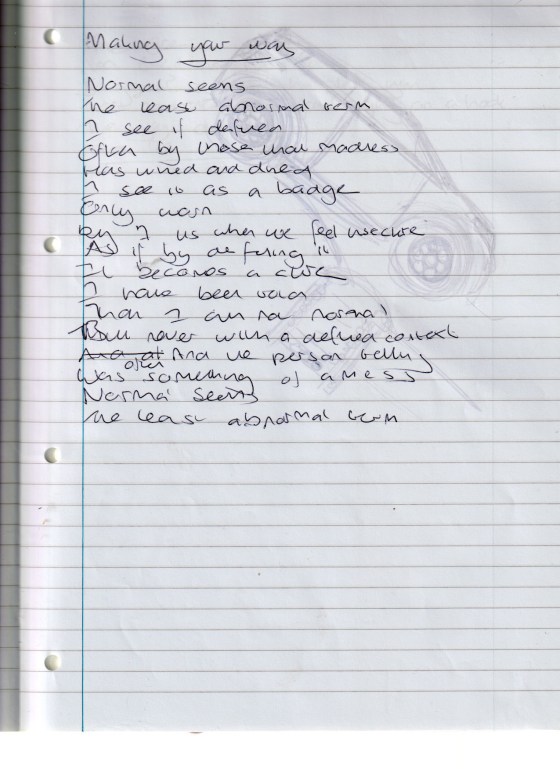 Normal normal seemsthe least abnormal termI see it definedoften by those for whom madnesshas wined and dined themI see it … More