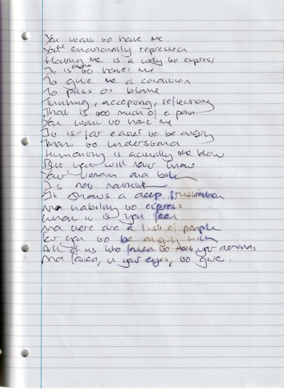 Repression you want to hate meyou’re emotionally repressed hating me is a way to expressit is your eagerness to hate … More