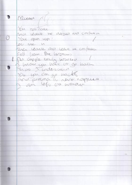 Untitled – Unfinished you retractand leave me dazed and confusedyou open uplet me in then leave and leave me confusedfell … More