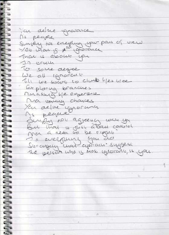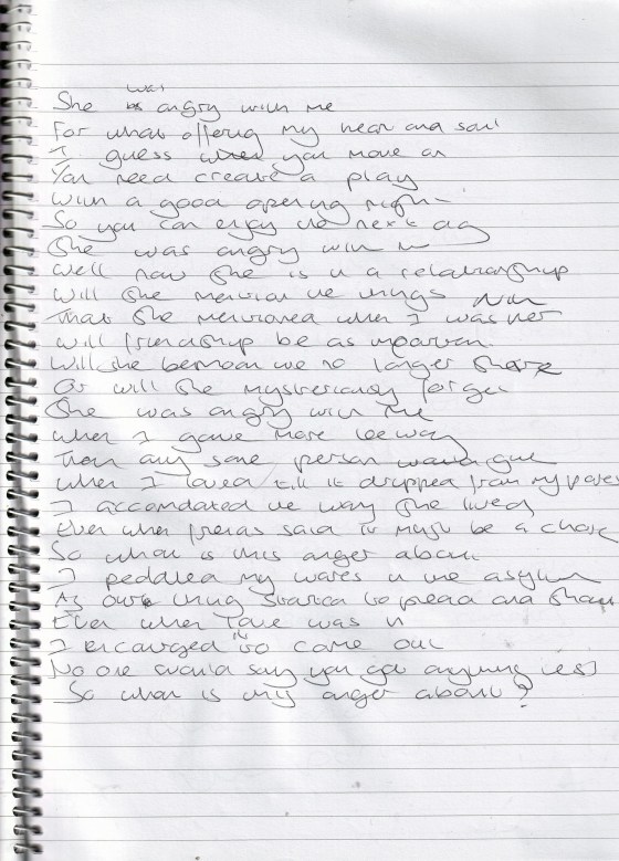 She Was Angry With Me – Written October 2009 (Aged 34)